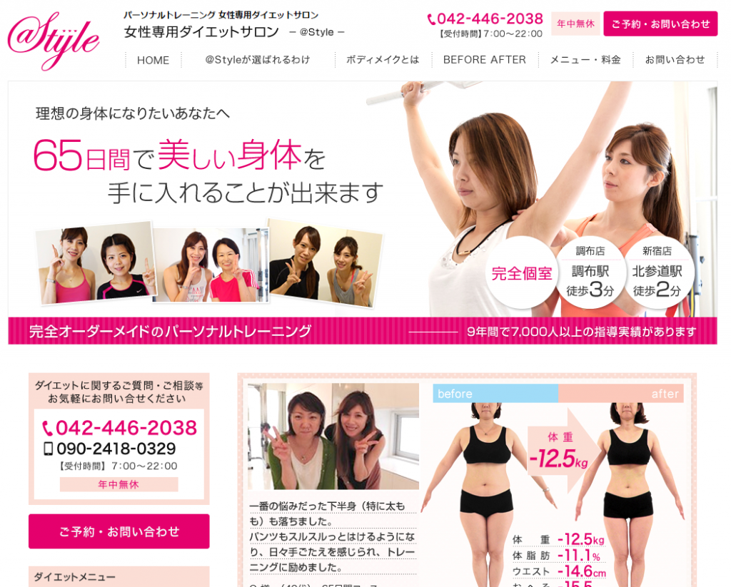 パーソナルトレーニング 女性専用ダイエットサロン @Style様のサイトがリニューアルしました!