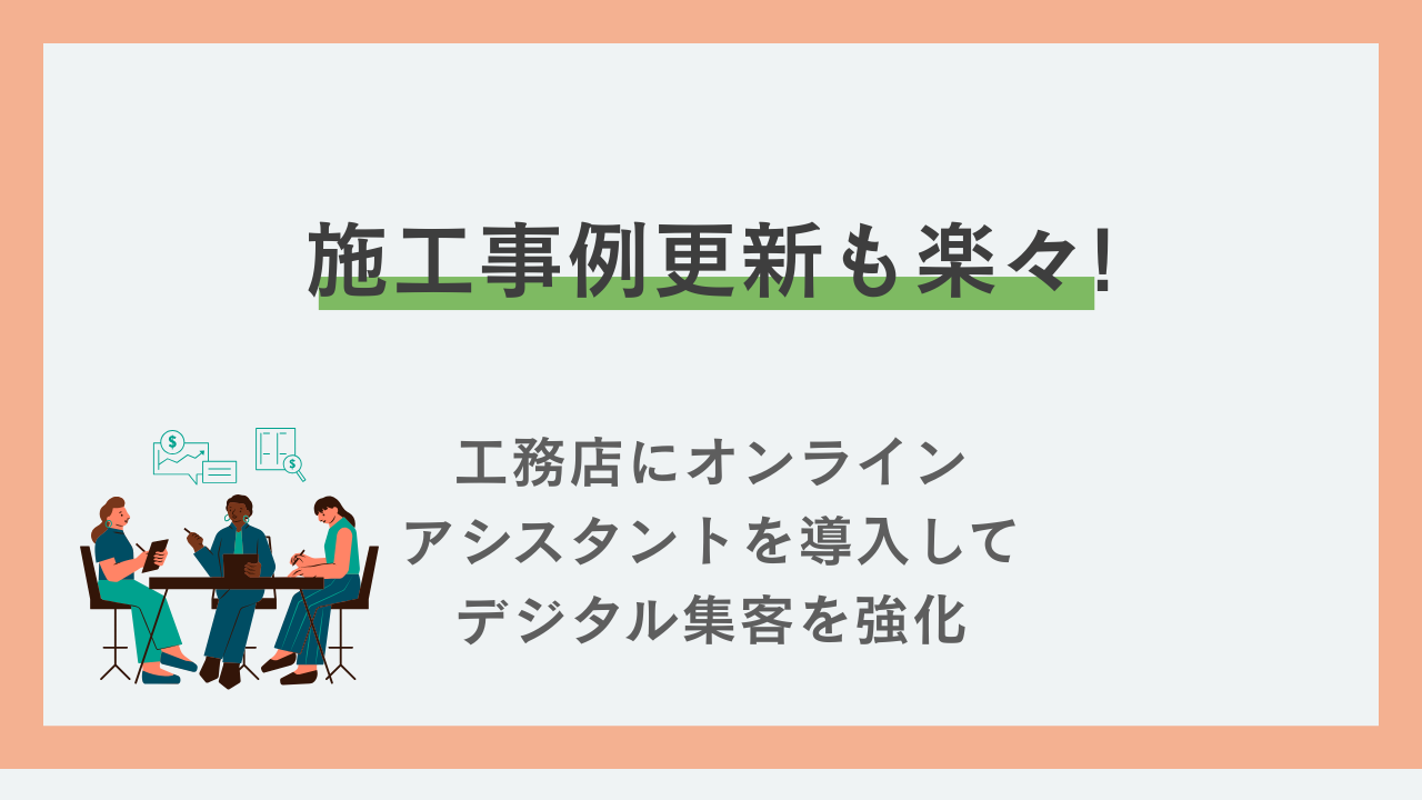 そこで、オンラインアシスタントを活用することで、施工事例の更新やデジタル集客を効率化し、事業の成長を加速させることができます。