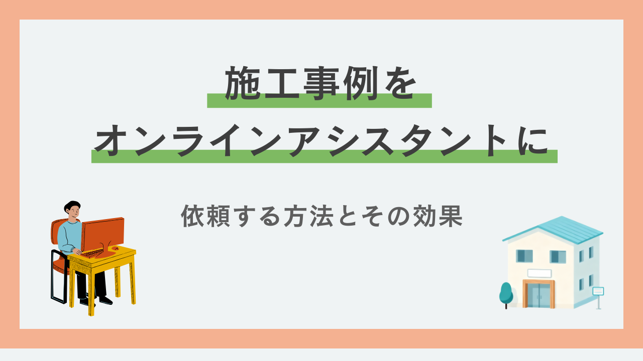 施工事例をオンラインアシスタントに依頼することで、効率的に情報を集め、施工事例に関する時間を大幅に節約することができます。施工事例の依頼に関する料金形態や、オンラインアシスタントの導入に向けた準備を理解していただくためにも、最適なオンラインアシスタント選びのポイントも詳しくご紹介します♪