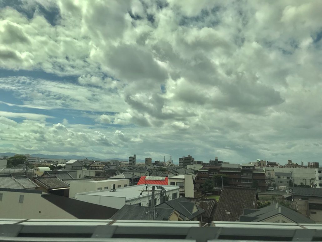 おはようございます。移動中の新幹線から、久しぶりのブログです。写真は京都を出てすぐの空。