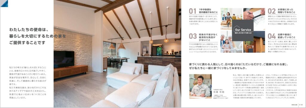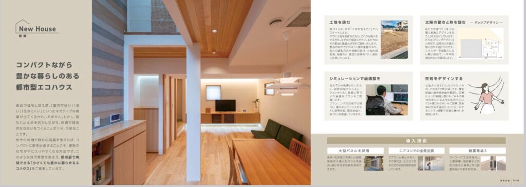 「小さな家で豊かに暮らす」ことをテーマに掲げ、いつもチャレンジングな佐藤社長の思いや、技術的な側面が伝わるようにパンフレットにまとめました。
