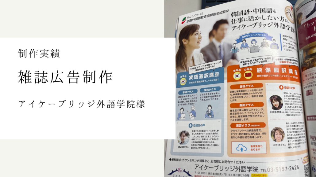 制作実績 アイケーブリッジ外語学院様 雑誌広告制作